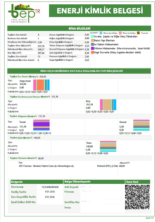 Yapıların enerji performans sınıfını gösteren enerji kimlik belgeleri 10 senelik zaman zarfında yenilenmesi gerekir.